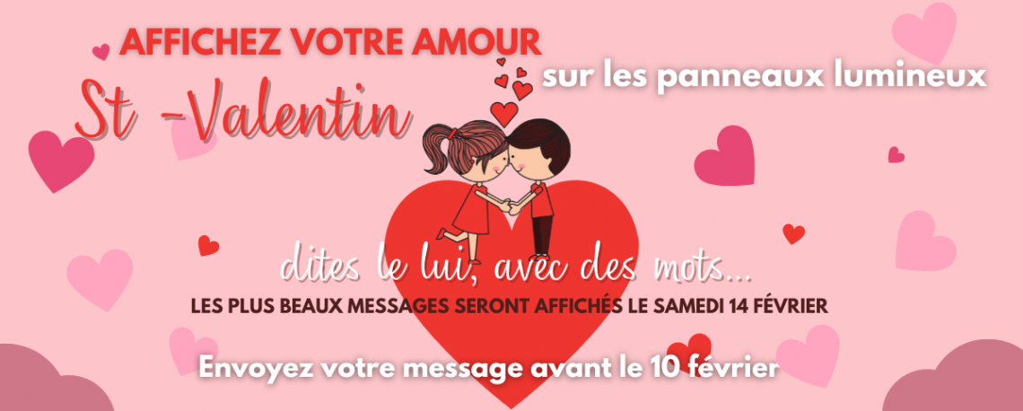 A l’occasion de la Saint-Valentin, nous mettons à votre disposition les panneaux d’information pour déclarer votre flamme à l’être aimé !